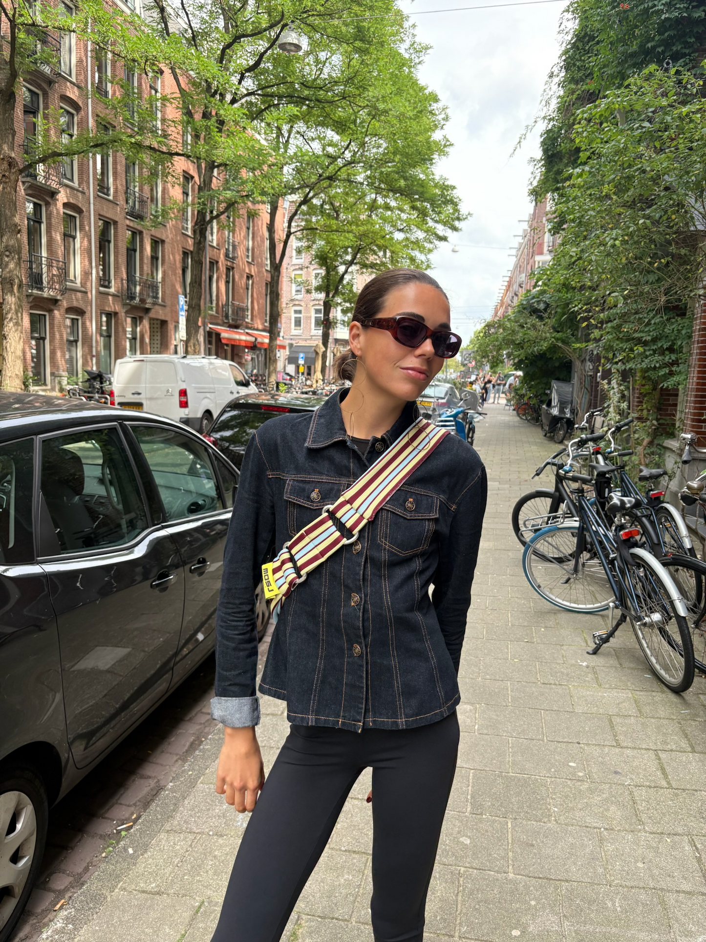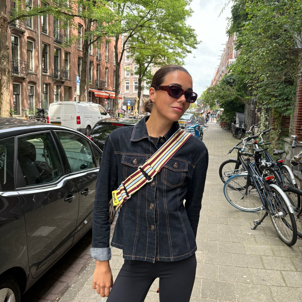 The Capri City Bag is your new go-to for effortless versatility. With two buckles and two straps in different lengths, this convertible crossbody bag can be worn three ways. With blue, pastel yellow, and burgundy stripes, this adjustable city bag adds a playful edge to any outfit. Compact, lightweight, and made to move, it’s the perfect companion for life on the go
